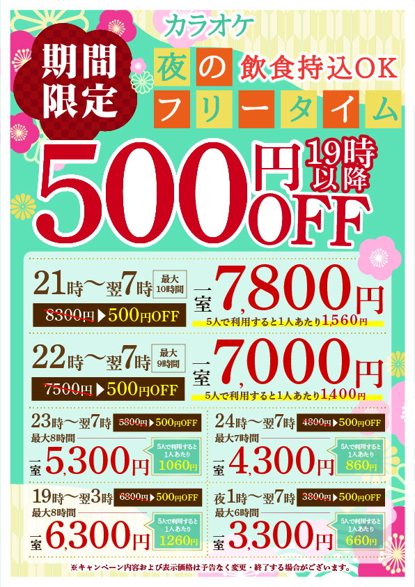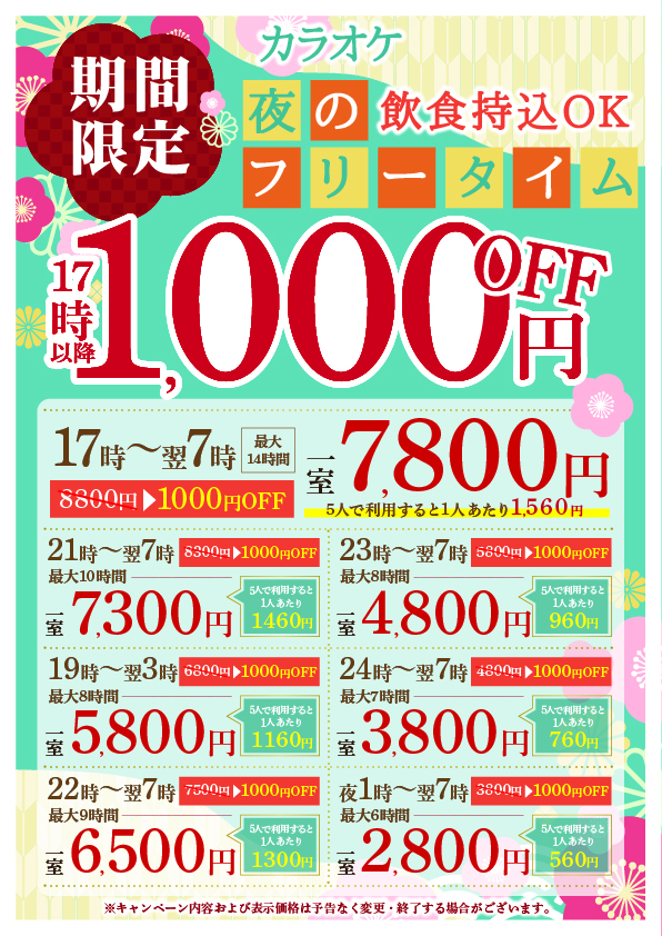 【期間限定】夜フリータイム最大1000円OFF!